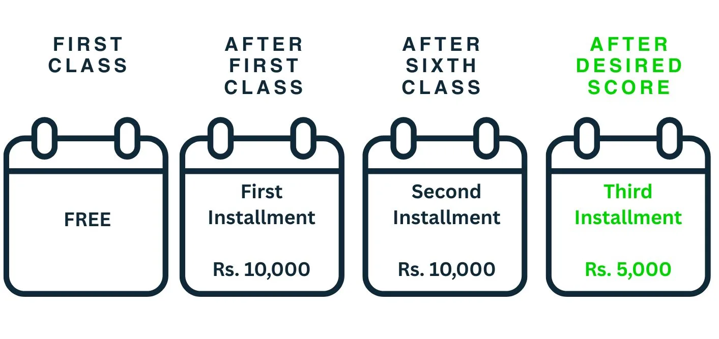 You only pay your final installment after you achieve your desired PTE score.